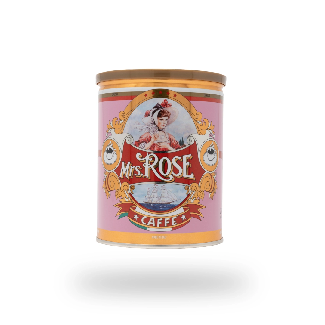La confezione in latta da 250 g mantiene intatta la freschezza e il profumo del caffè, assicurando un’esperienza sempre perfetta. Mrs. Rose è un marchio registrato di Mokamo Srl.